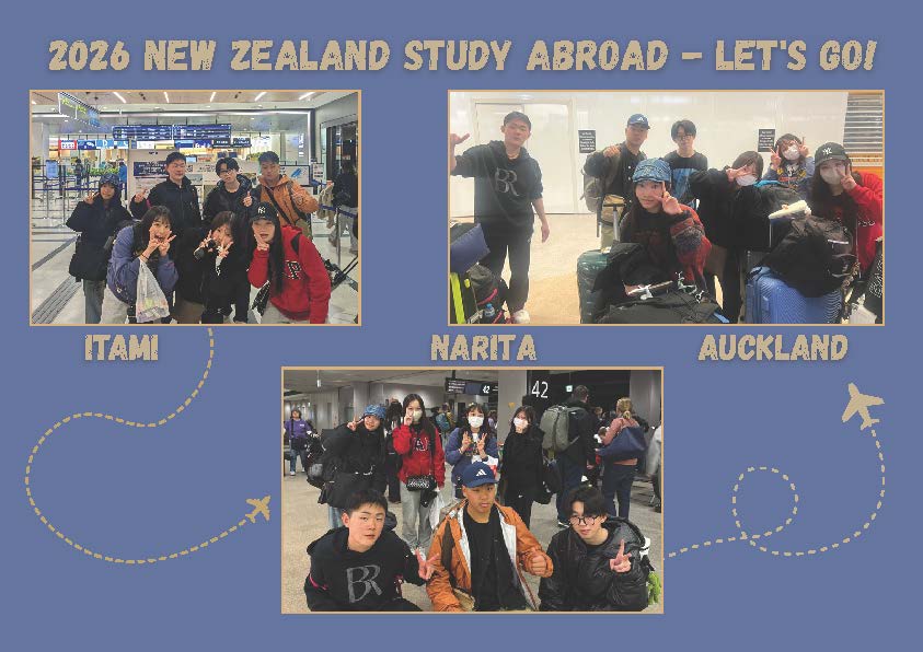 2026年のニュージーランド留学が始まりました。7名の生徒は無事にニュージーランドに到着しました。生徒たちは、ホストファミリーに出会い、学校が始まり、ニュージーランドでの生活を楽しもうとワクワクしています。
