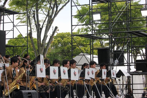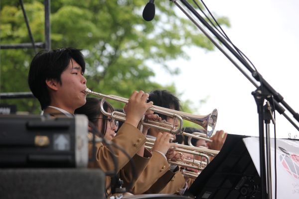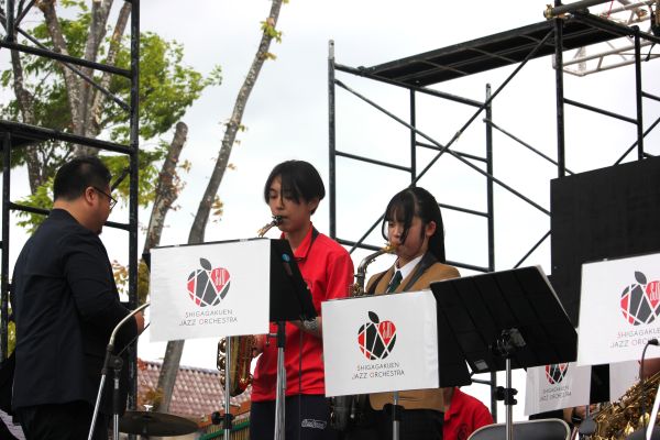 4月26日(日)、本校ジャズオーケストラ部にとって「ホーム」でのジャズフェス、びわこジャズ東近江に出演しました。昨年に引き続き甲南高校の皆さんと共演させていただくことができ、また、今年はプロのジャズ奏者西村有香里さんと光岡尚紀さんとも共演させていただくことができました。